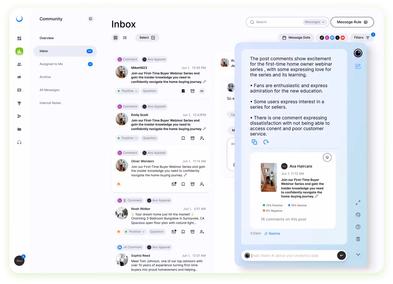 Dash Social’s Community Manager helps Real Estate brands connect to their audience in real-time, understand the sentiment and improve overall customer experience.