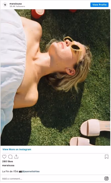 Sustainable cool girl brand @reformation gets cheeky with it. They regularly post memes to their Instagram feed, and on average, those memes get the most engagement from their followers. Know what makes your audience laugh and it could pay off big time in the form of likes, comments, and follows.