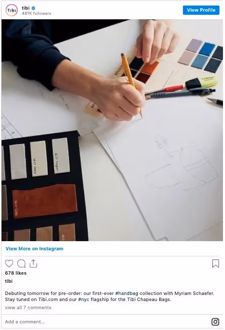 For example, tibi is using a great image of their designer mid-crayon stroke to tease the release of their new handbag collection.