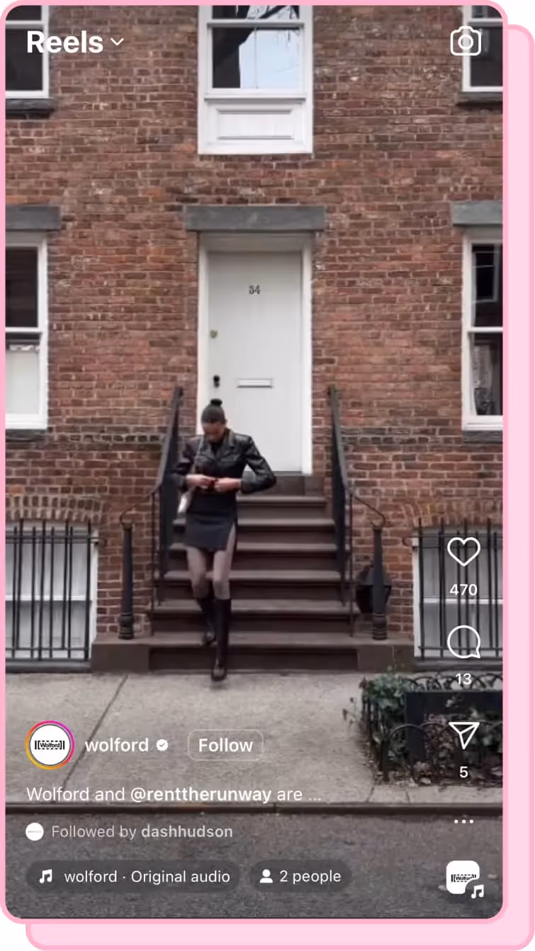 Wolford was founded in 1950, but don’t let their old legacy fool you — they have an ultra-modern approach to Instagram. Their feed features a consistent color scheme, taking a sleek approach with models showcasing the look and feel of their products. They also provide a glimpse behind the scenes of product shoots in their Reels, a great way to connect with your community and foster a sense of inclusivity with your audience.