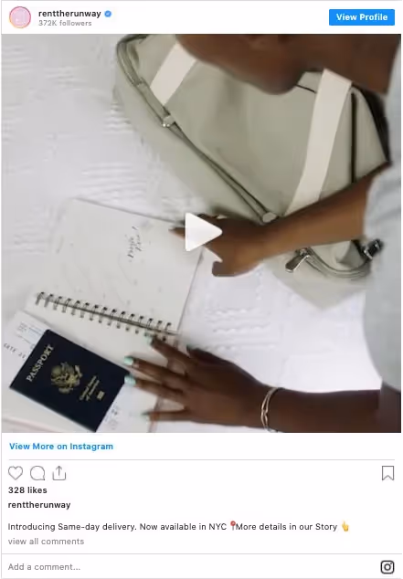 The rent-a-dress concept was fresh and just what girls everywhere needed. As Rent the Runway's business evolved and their brand took shape, so did their social media strategy; the company's Instagram account is populated with a healthy mix of aspirational user-generated content, fun videos, informative snippets of news-worthy announcements, and real-life relatable scenarios.