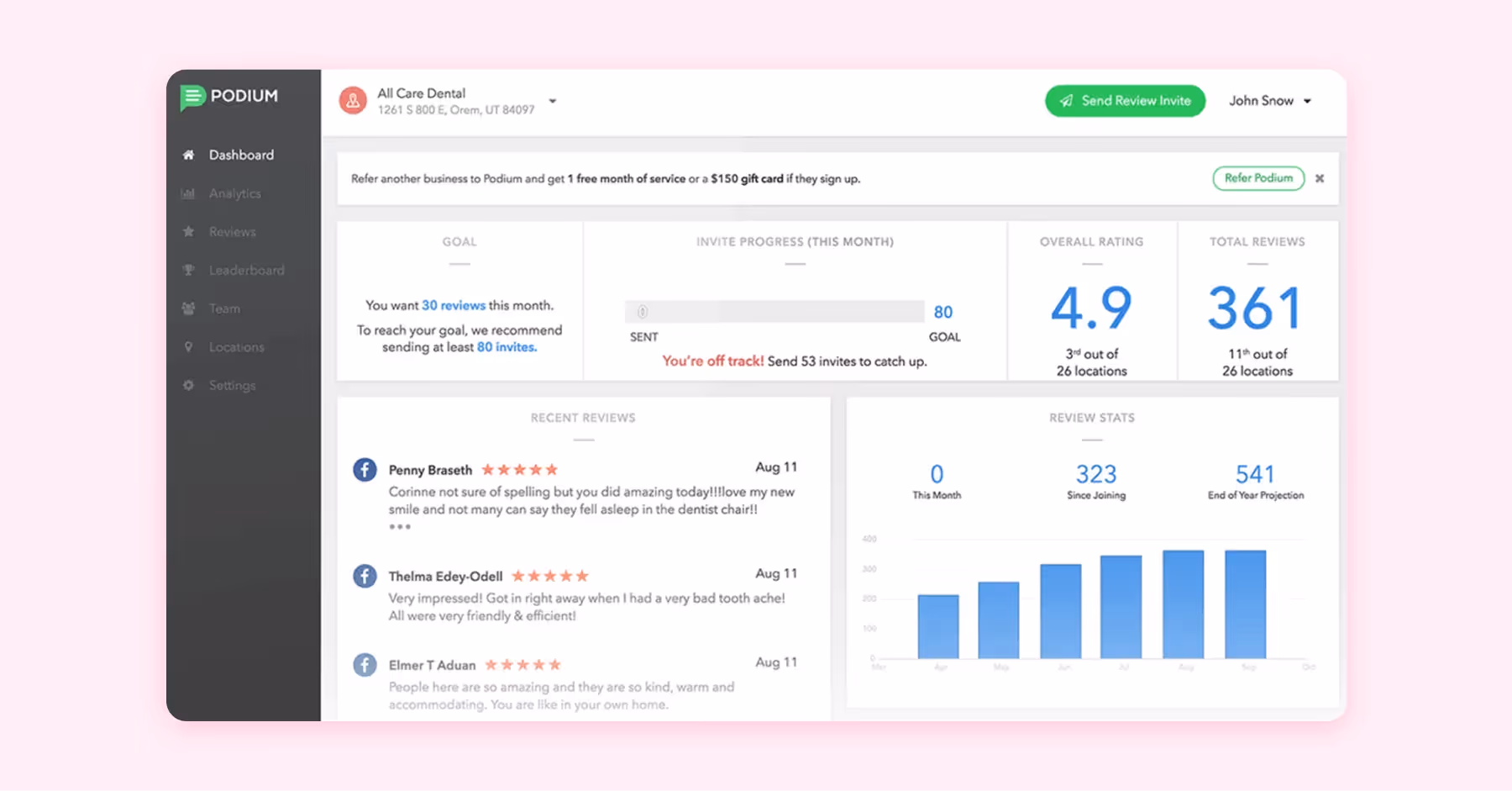 What Users Say: “I really love the review response features! Easy, professionally curated response that can be mixed and matched! All our reviews are responded to same-day and we never have to second guess what we wrote! The process is very smooth and quick to implement. Our office uses the tool about 2 or 3 times a week. Integration is seamless and customer support is very responsive.” Source