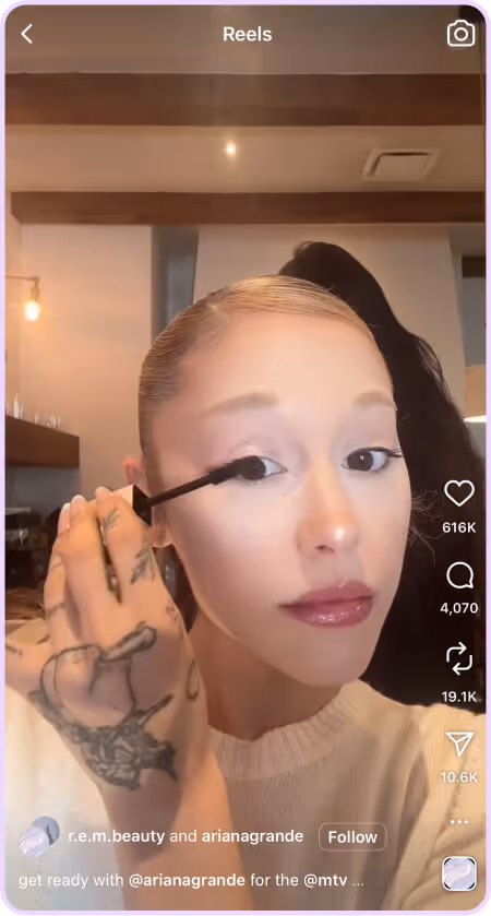 If you’ve ever watched Ariana Grande apply eyeliner, her beauty venture likely comes as no surprise. With an already successful perfume line under her belt and millions of fans invested in her beauty routine, R.E.M. Beauty is the perfect vehicle for social selling. Celebrity-founded brands already come with built-in influence and trust, but R.E.M. Beauty takes it a step further by keeping its social presence authentic, creative, and shoppable.