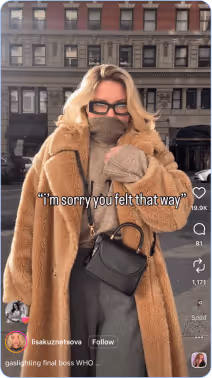 Use this trend to share a moment where you might not be taking the easiest or most practical route, but decided to anyway. You can also use this trend to talk about any habits you have (like shopping every sale that comes through your inbox, or always needing a freshly applied lip combo) with a text overlay saying “The lion doesn’t concern himself with (insert your trait here)”.