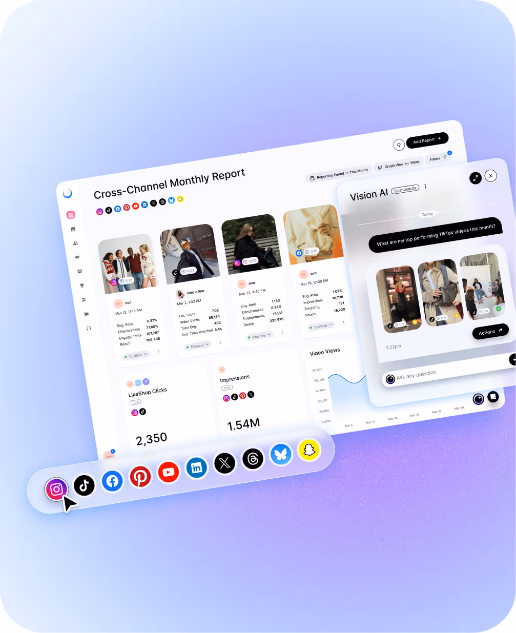 Rather than work in siloes, Dash unites your full footprint across owned, creator, and paid with real-time intelligence and streamlined workflows.
