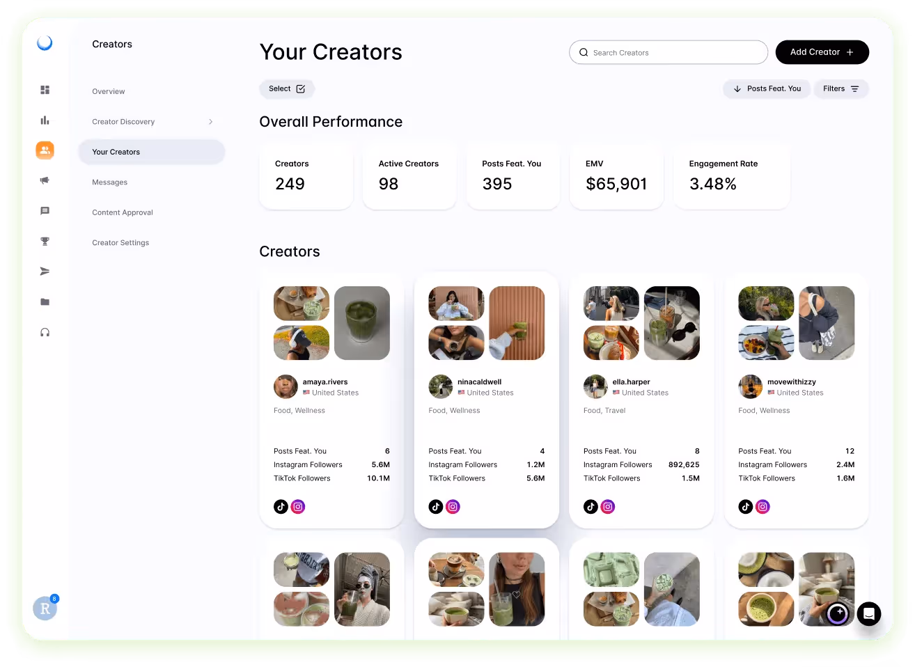 Easily connect with and understand your influencer relationships. CPG and Food brands can seamlessly measure ROI, discover which posts drive engagement and maximize the impact of your spending with Dash Social’s Creator Management.
