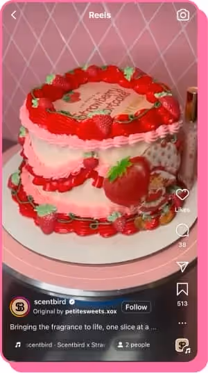 We focused on community based marketing, tapping into communities like fragrance lovers, DIY, baking and ASMR — we also introduced a real-life mascot (Misty) for our LA events and collaborated with Tatiana Clark on a custom sound for Instagram and TikTok. The goal was to bring the Scentbird x Strawberry Shortcake experience to life for all five senses, both online and offline.